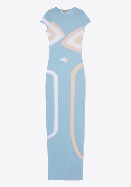 Abito Lungo in Crêpe de Chine in Stampa Astro