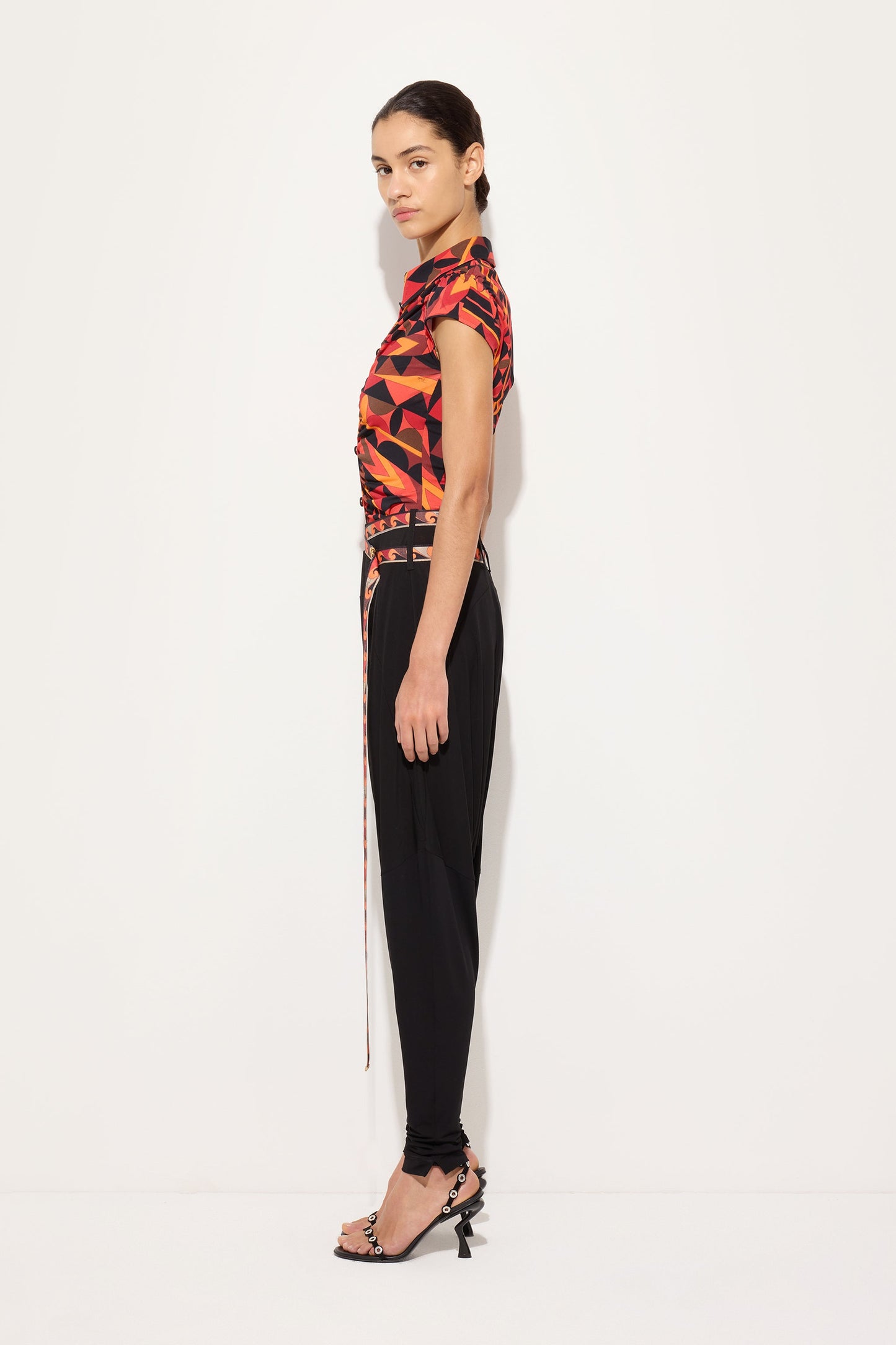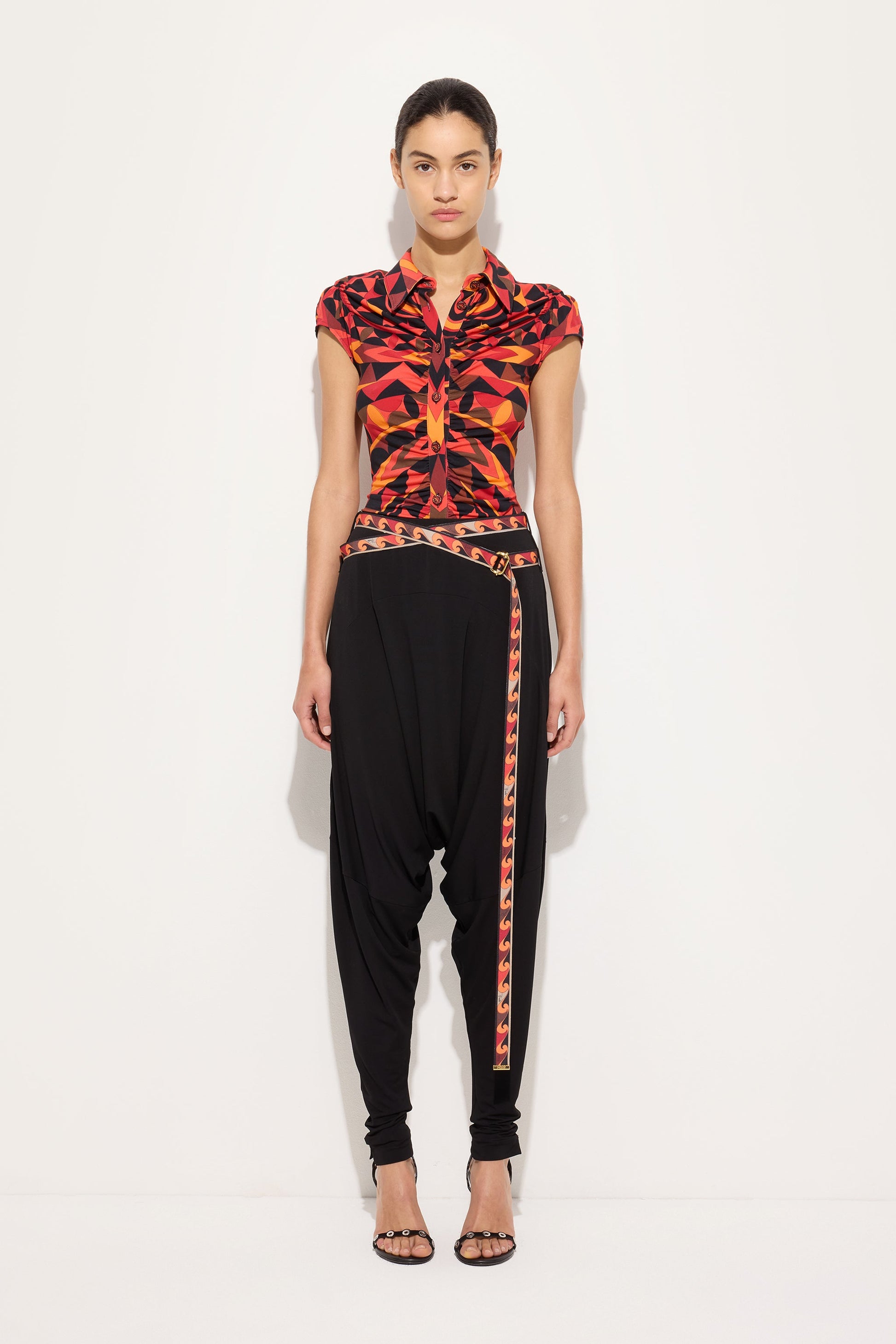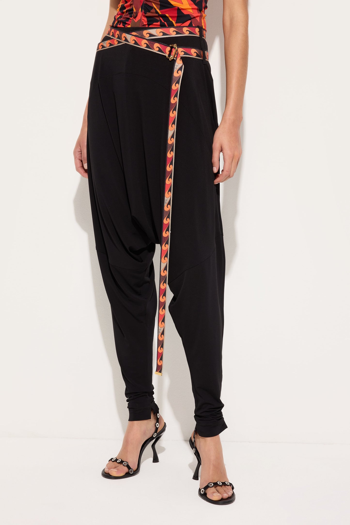 Flowing Pants with Printed Belt