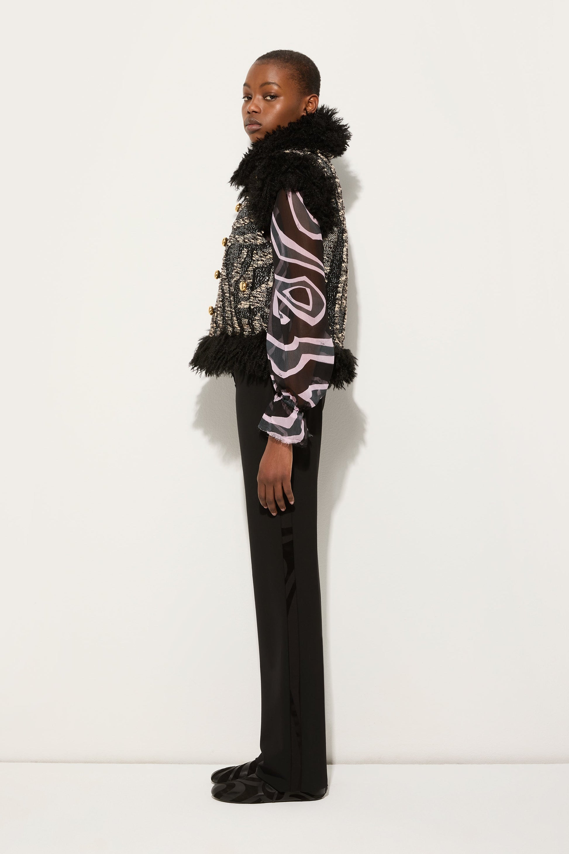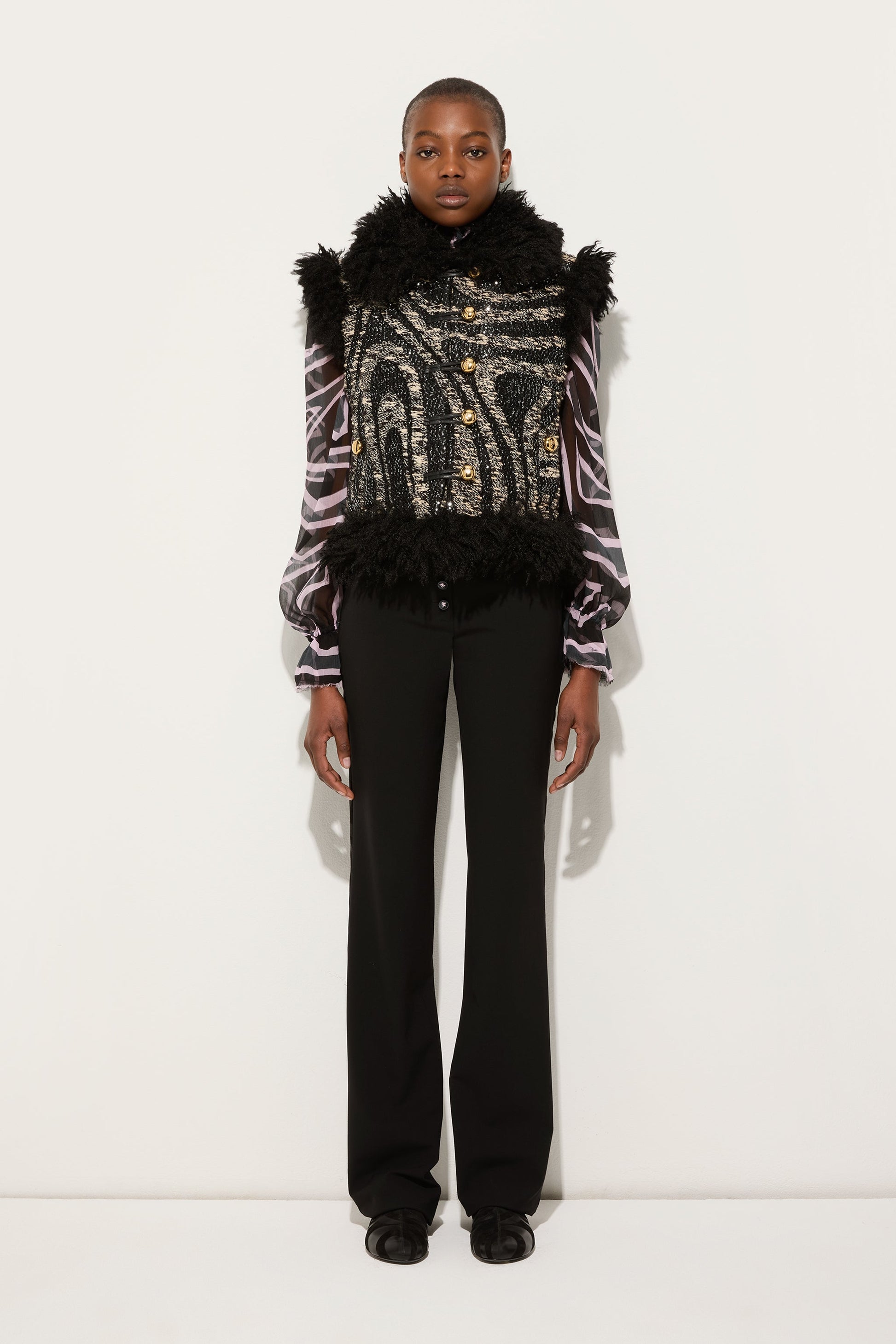 Tweed Waistcoat with Fur Details