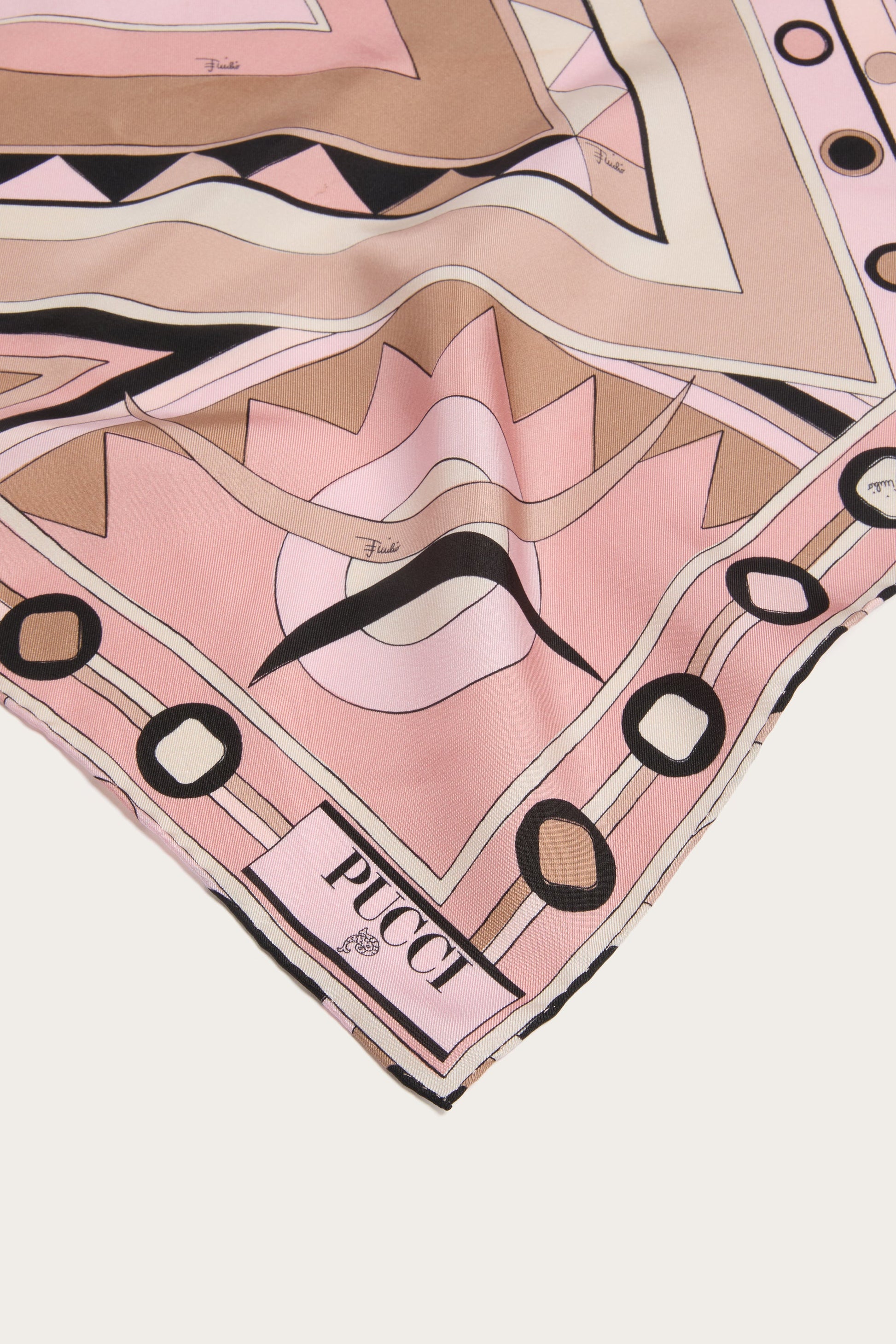 This printed carrè pays homage to the iconic Vivara print, reinterpreted in delicate nude shades. With its compact size, it is the perfect accessory to add a distinctive touch to any outfit.