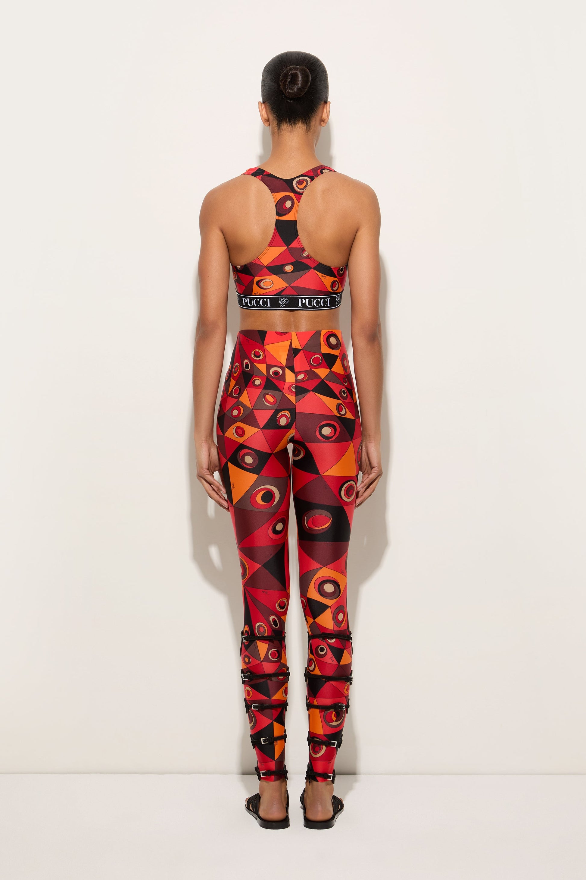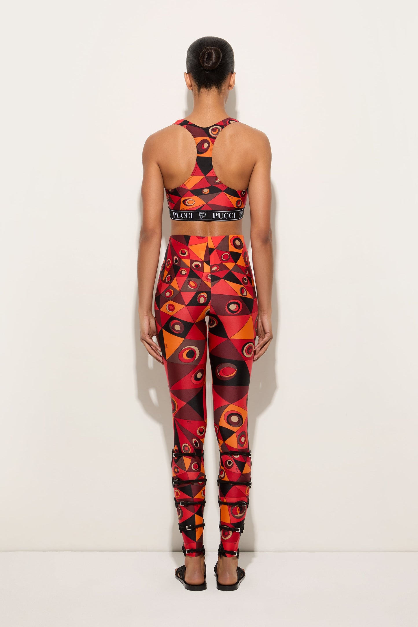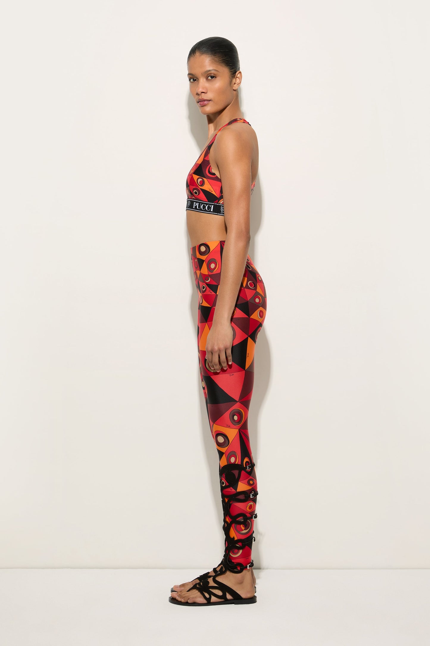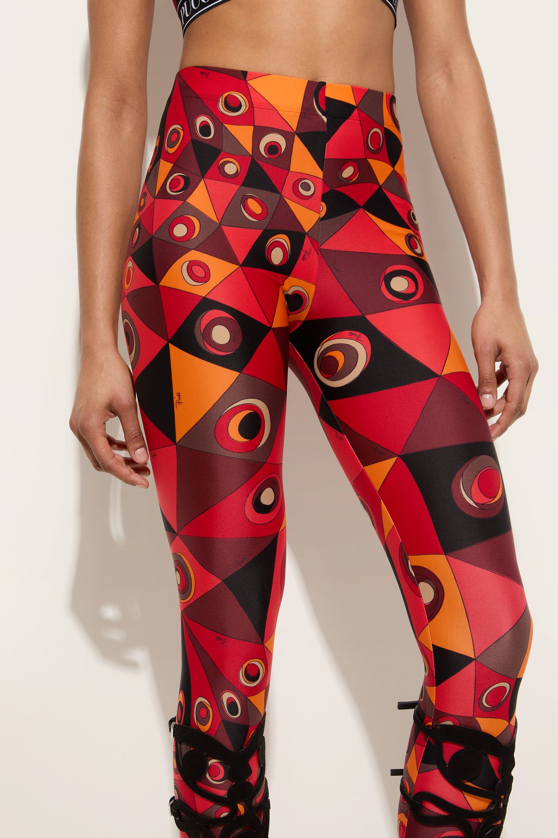 Leggings with high-performance design, created to offer comfort and freedom of movement with an unmistakable graphic detail. Made from stretch Lycra, they accompany movement with elasticity and comfort, while hidden zips at the ankles add a functional, clean detail. The Occhi print in shades of orange and black crosses the surface with an iconic visual rhythm, transforming a technical garment into a distinctive element of the look.