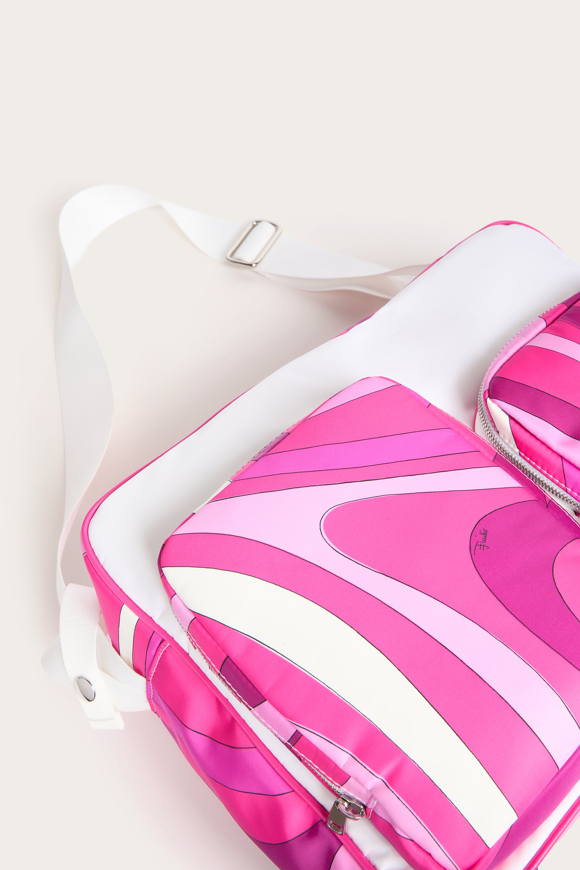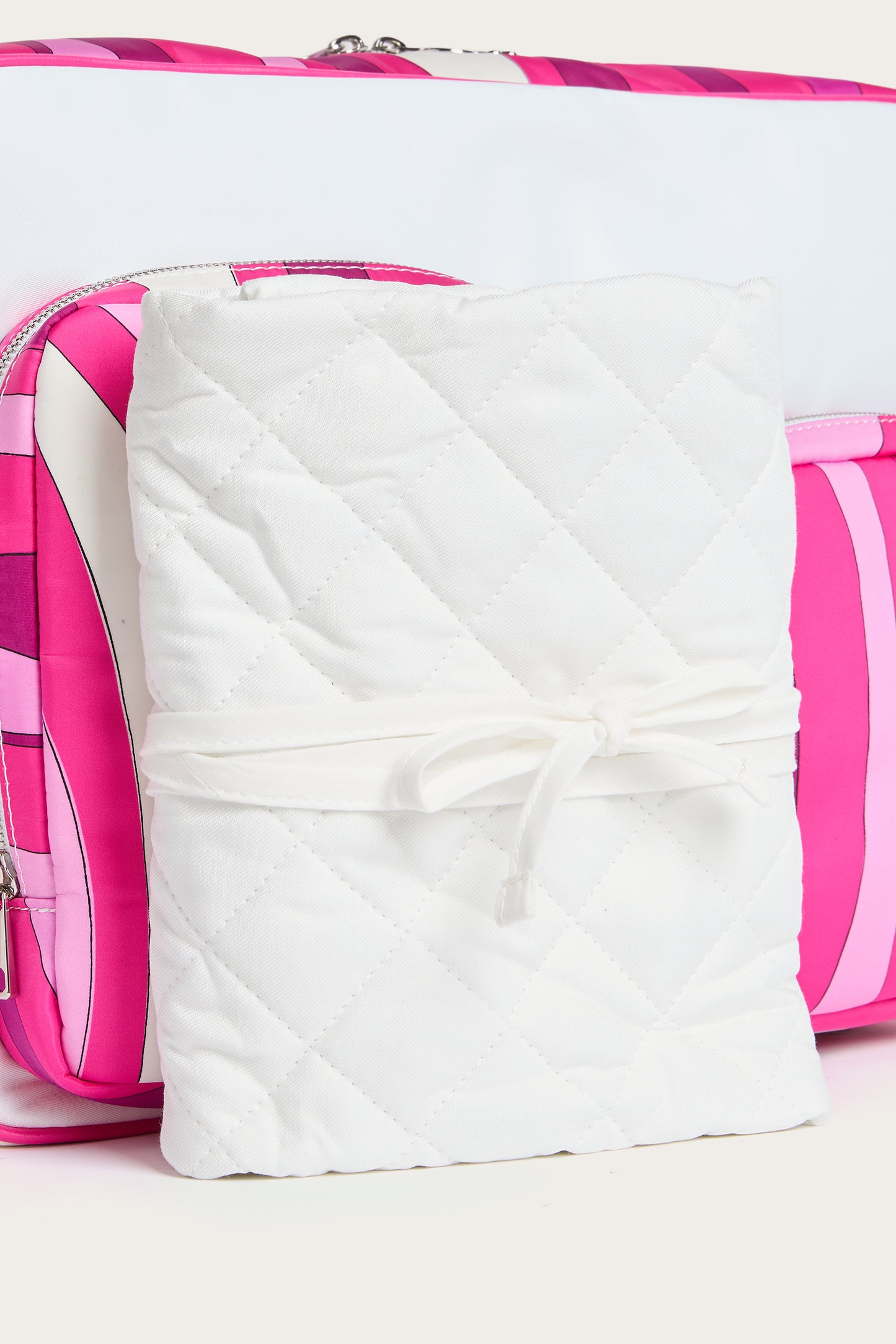 Made from recycled nylon, this diaper bag combines functionality and style. Decorated with the iconic Marmo print in shades of purple and white, it features an adjustable shoulder strap and external zippered pockets for optimal organization of your baby’s essentials.
