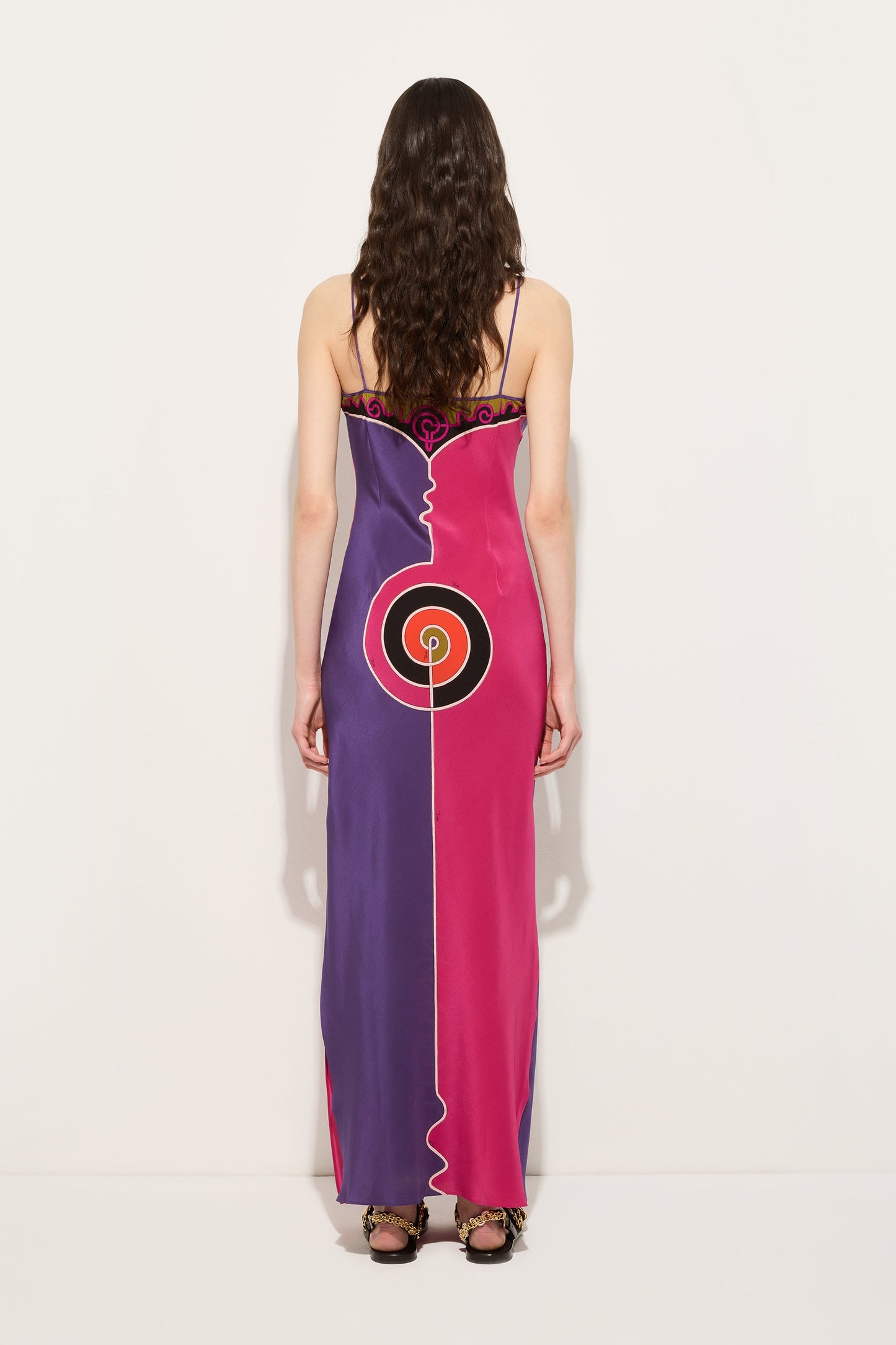 Astro Print Long Crêpe de Chine Dress