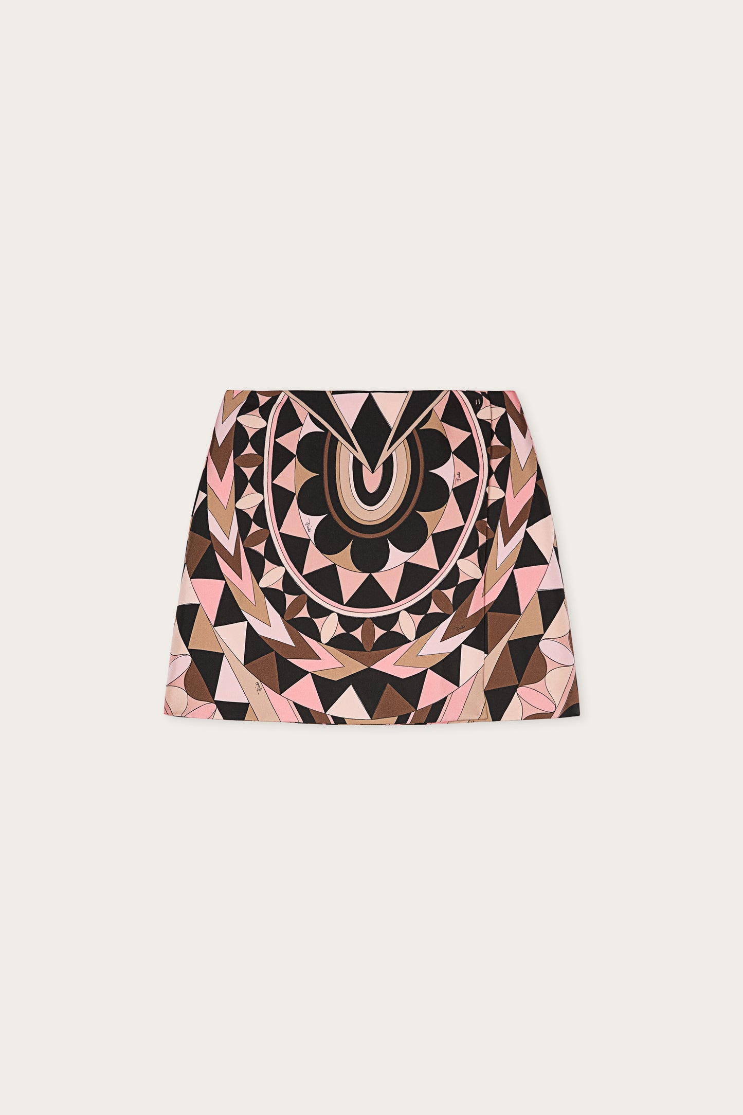 A bold skirt that combines tailored structure with iconic graphics. Crafted from silk twill, it features a wraparound construction that precisely defines the silhouette, while the snap button closure maintains a clean, contemporary line. The Manuba print in nude tones enlivens the surface with a dynamic and recognizable rhythm, creating an elegant balance between compact material and visual movement.
