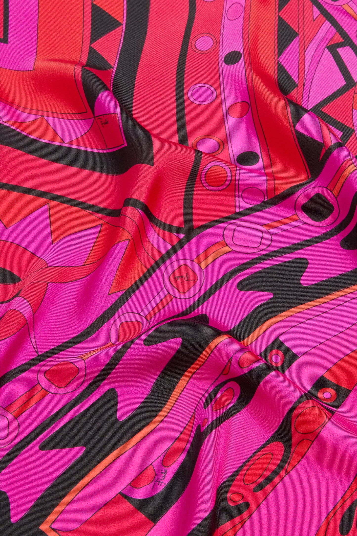 A lightweight, enveloping accessory that interprets color as movement. This pure silk stole combines the Angoli, Vivara, and Soleil prints in a graphic composition in shades of fuchsia and black, where geometry and light interact with natural fluidity. The soft finish accompanies the gesture, while the frayed hem adds a textured and elegant touch. Designed to be worn in multiple ways, it completes the look with a dynamic and refined accent.