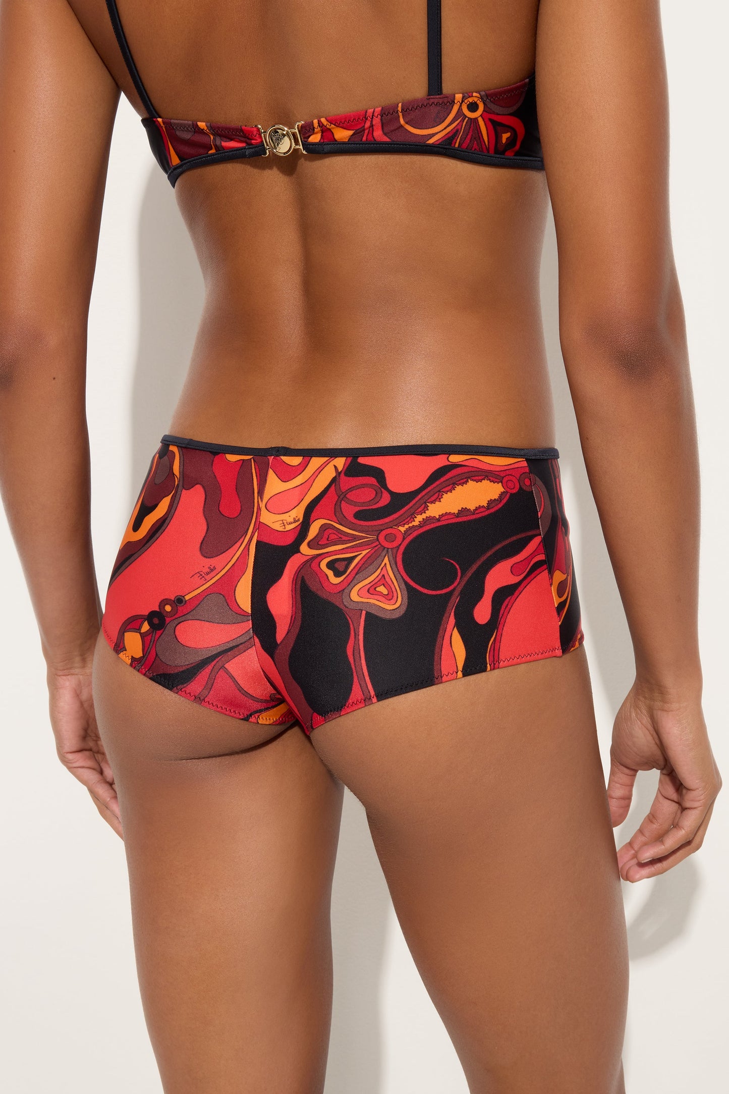 These coulotte bikini bottoms have a simple, contemporary design and are created to offer a comfortable fit. Made from Lycra, they offer a clean and precise fit, maintaining a sense of lightness and elasticity. The intense and characterful orange and black Orchidee print is perfect for completing an iconic, bold beachwear look.