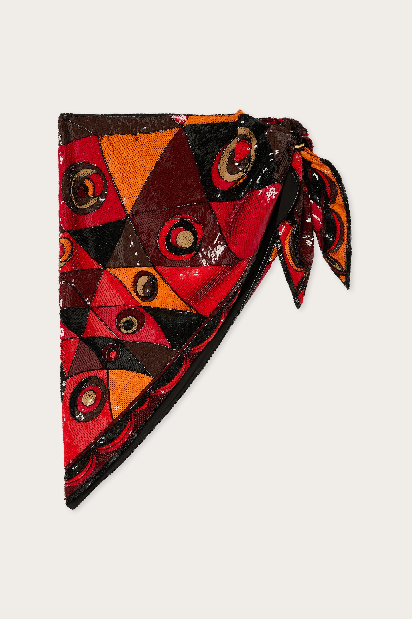 Pareo scarf with Occhi print, featuring embroidery in shades of orange and black.