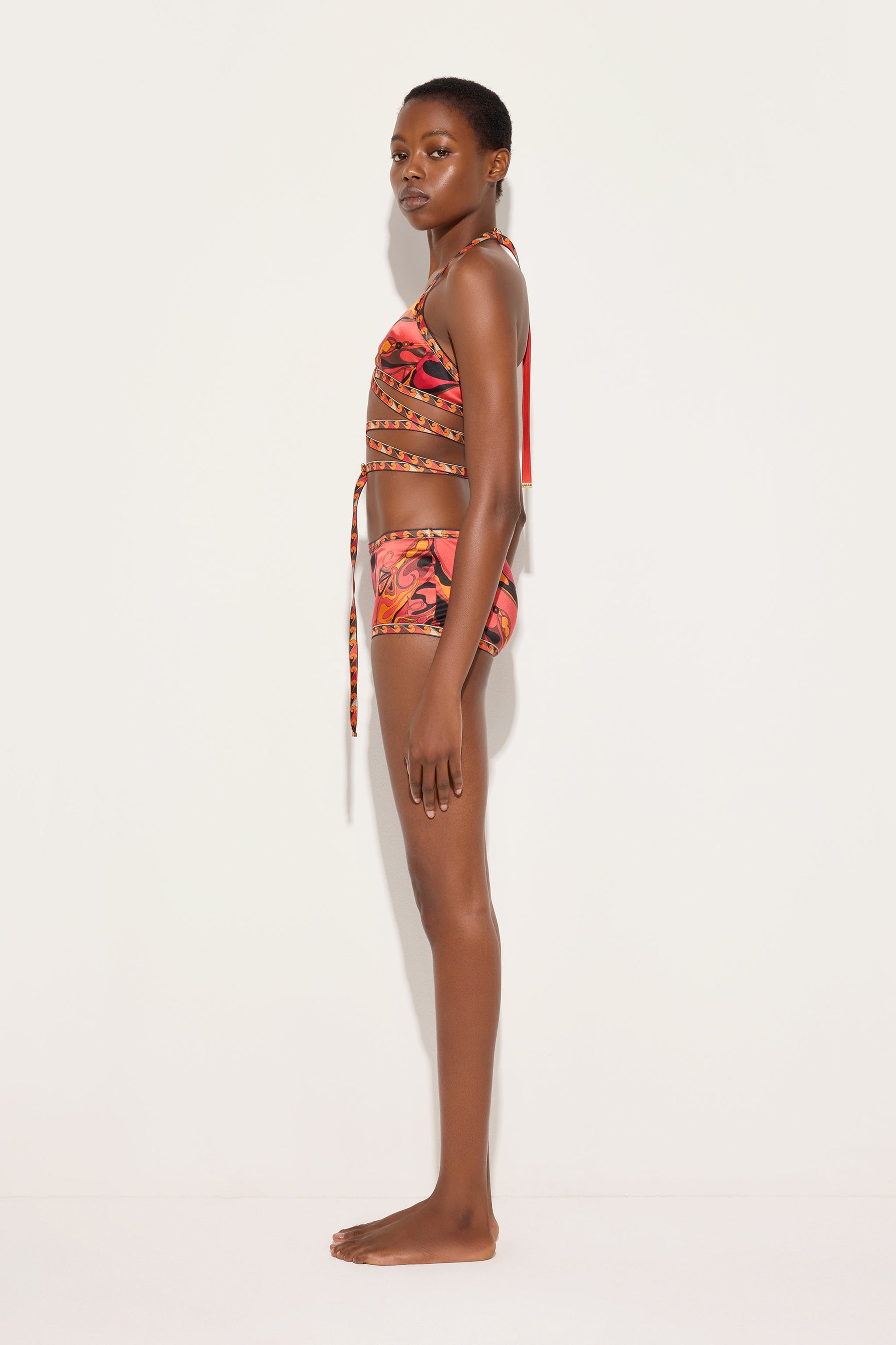 Refined and contemporary boxer shorts made from stretch silk satin for a smooth and comfortable feel against the skin. The clean lines are complemented by an elastic waistband, which ensures a stable and natural fit. The orange and black Orchidee print adds an iconic graphic accent, perfect for sophisticated underwear.