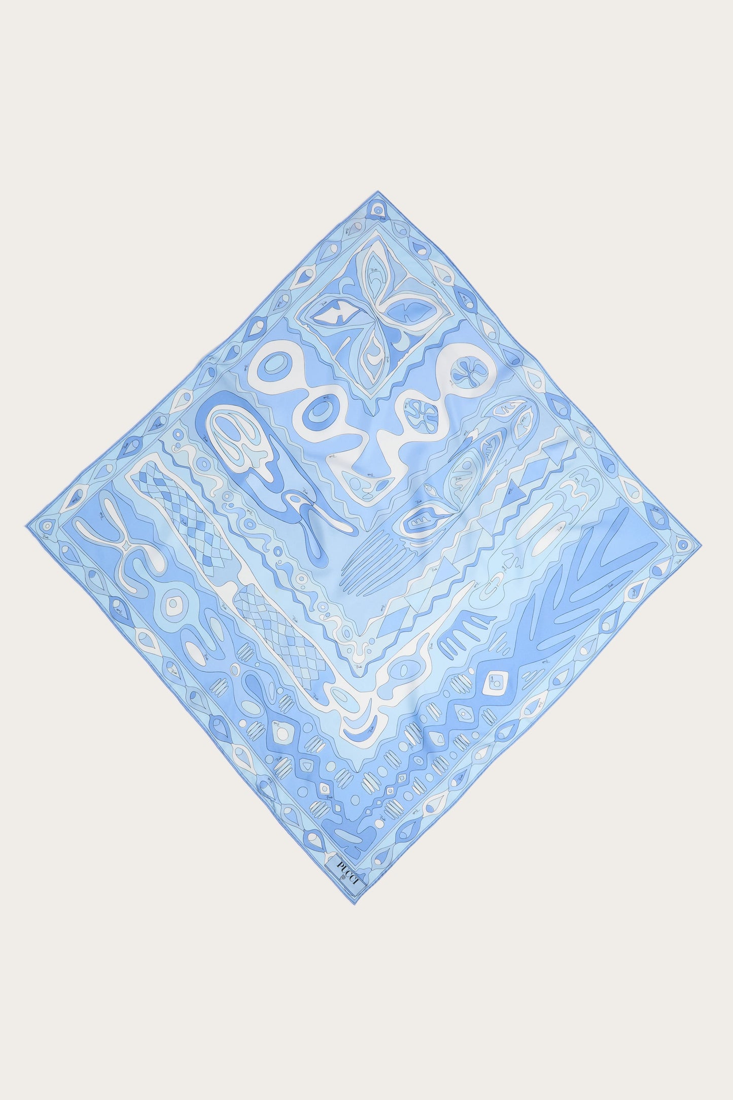 A timeless accessory that embodies all the elegance and color of the Pucci world. This silk twill scarf, with its iconic pale blue print, is the perfect detail to brighten up any look.