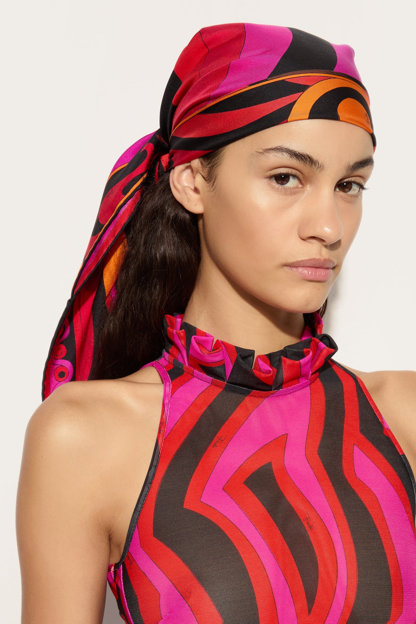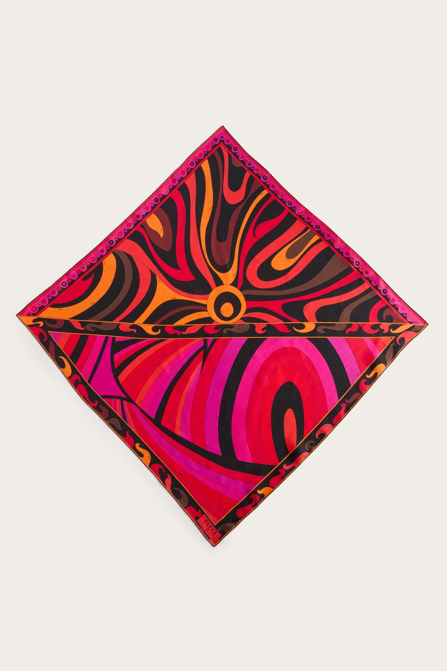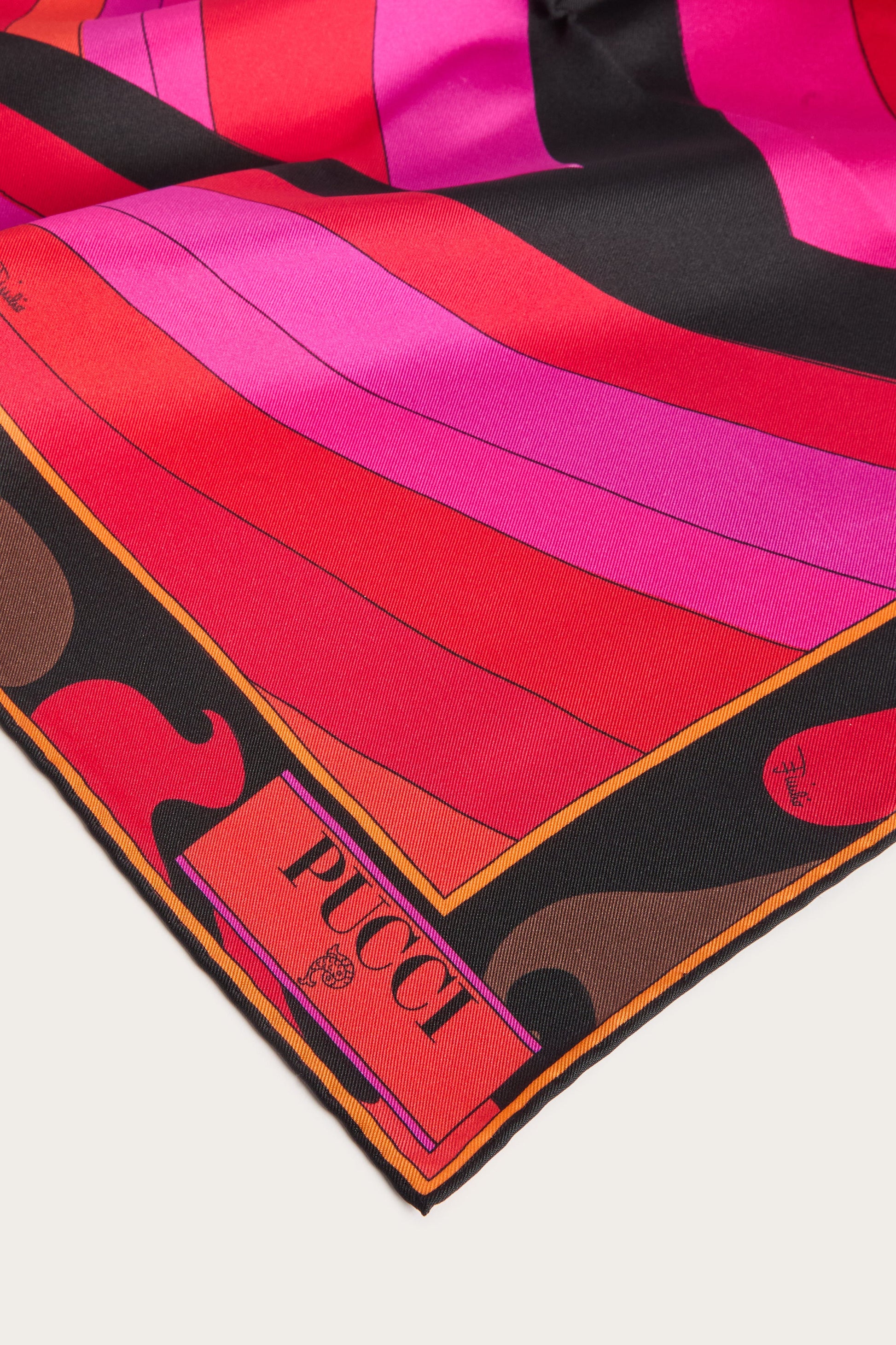 A timeless accessory that embodies all the elegance and color of the Pucci world. This silk twill scarf, with its iconic fuchsia and orange prints, is the perfect detail to brighten up any look.Versatile and sophisticated, it can be worn around the neck, tied in the hair, or knotted to a bag for an unmistakable touch of class. A piece that speaks of style and personality, ideal for any occasion.