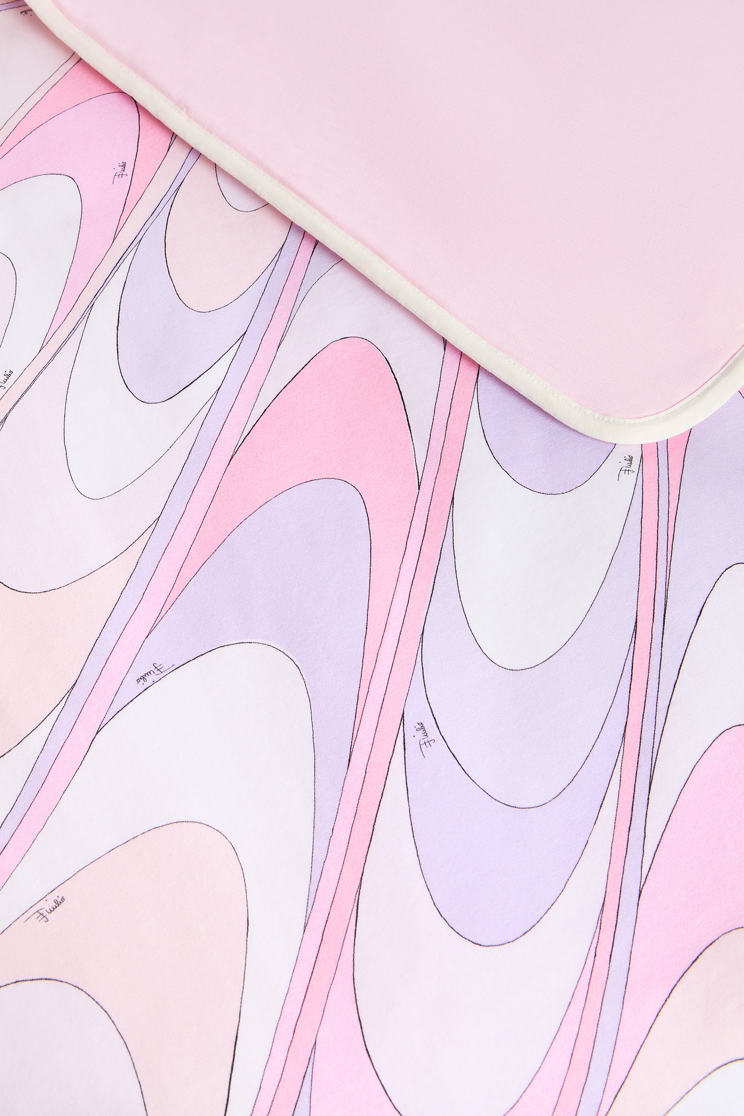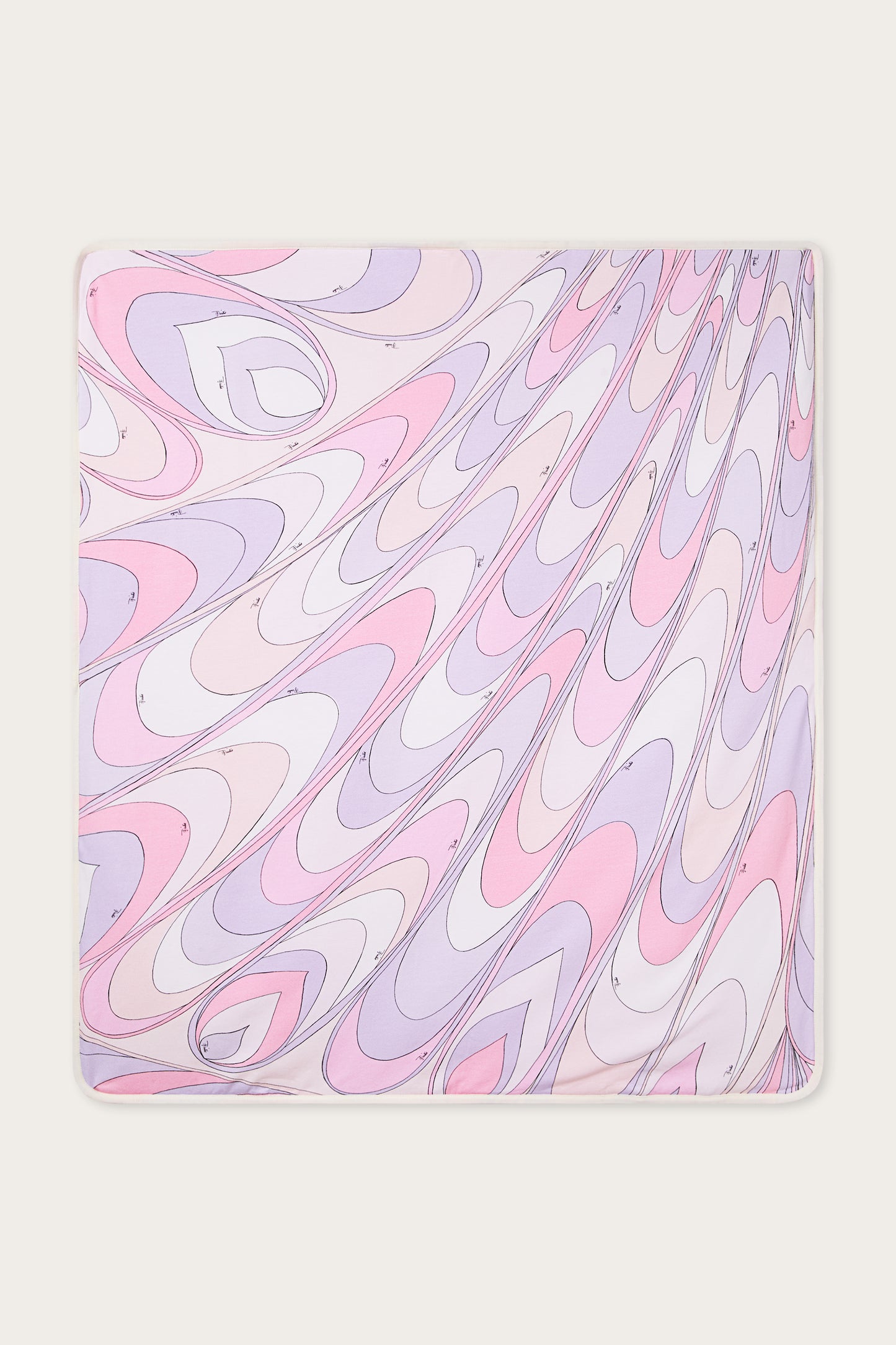 This soft organic jersey blanket is designed to offer maximum comfort to babies. Decorated with a delicate Onde print in shades of pink and lilac, it is the perfect accessory for cuddles and walks.