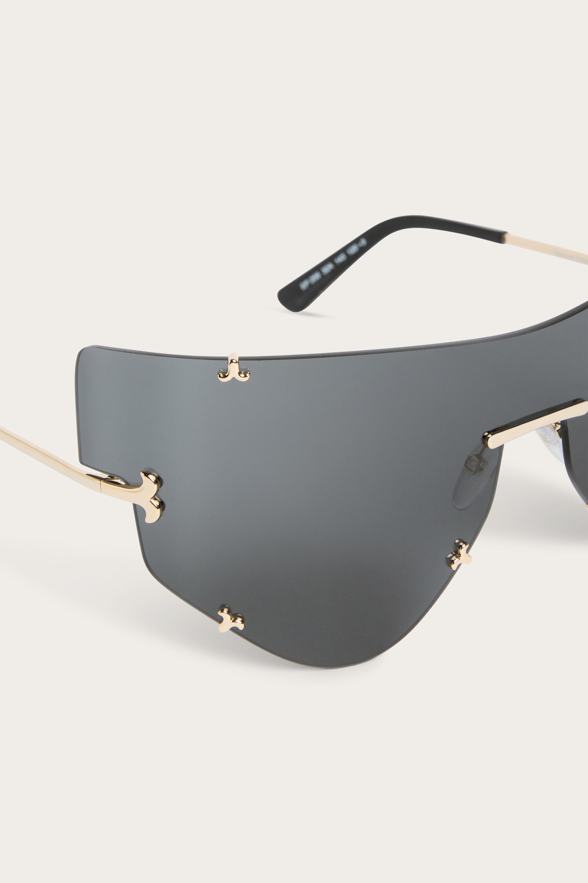 A model with a strong visual impact, designed for the catwalk and created to catch the eye. The oversized mask wraps around the face with a bold and decisive design, defined by a linear bridge and a slightly sloping eye contour that creates a dramatic and contemporary effect.