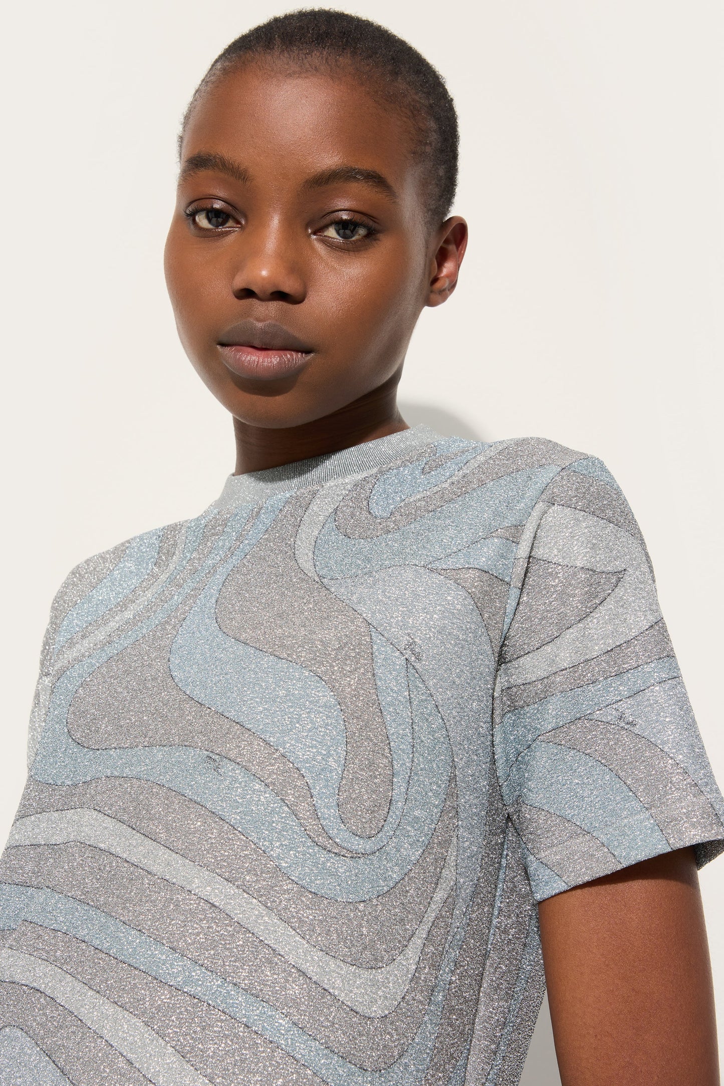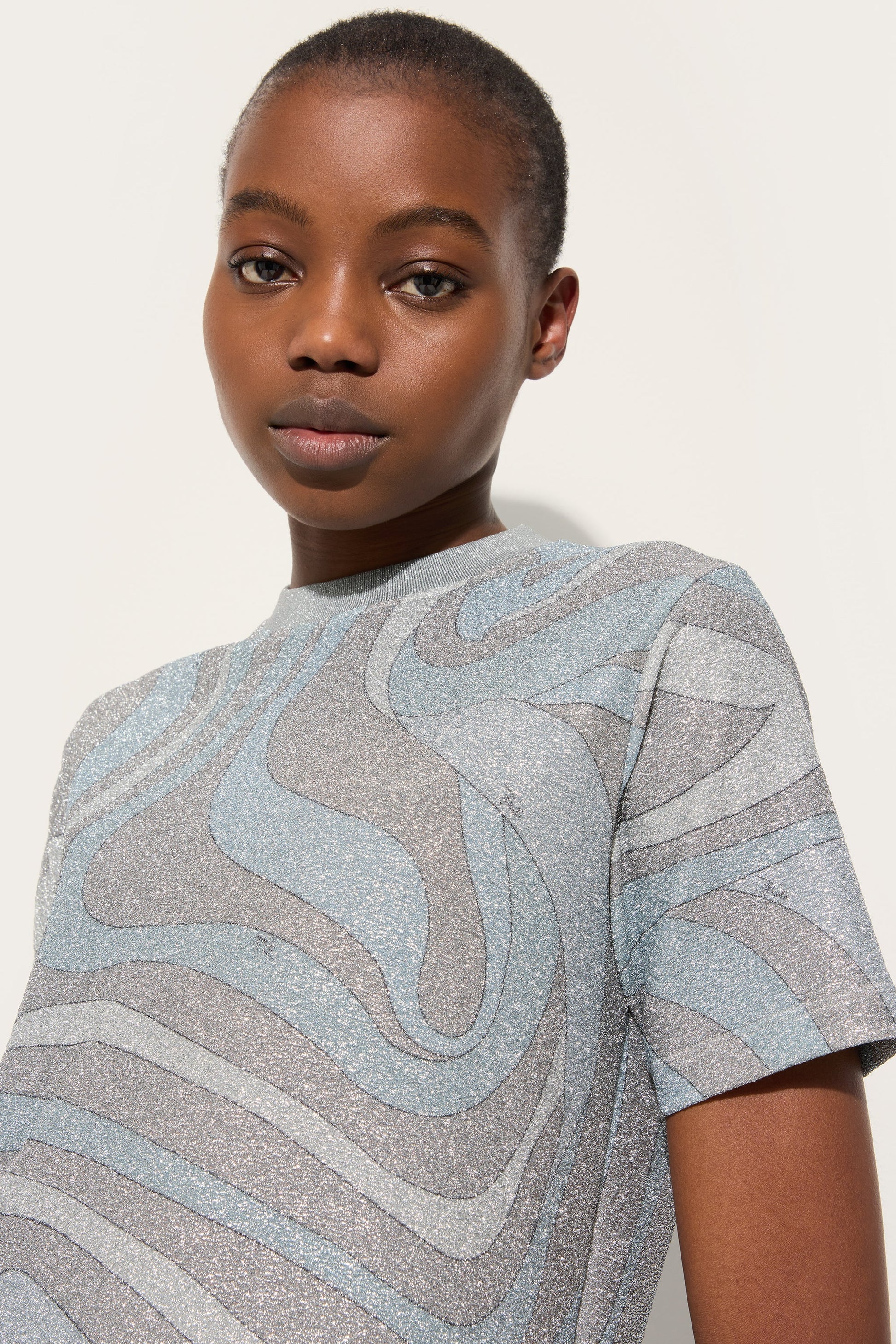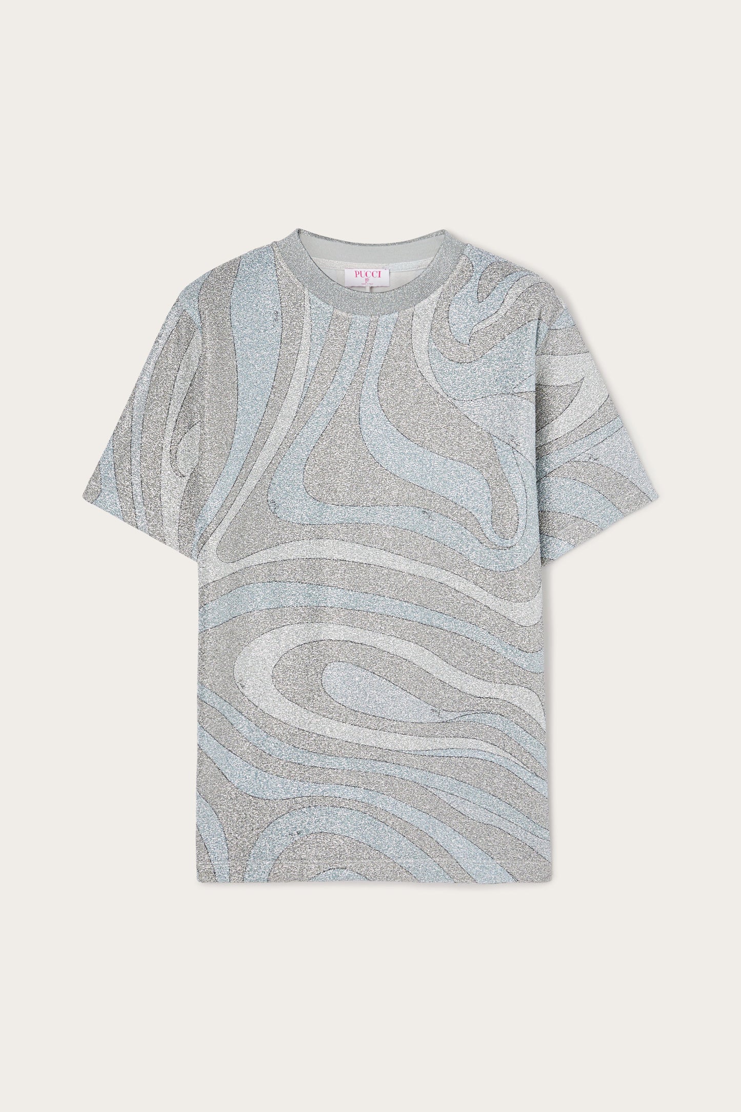 T-shirt in Jersey Lamé in Stampa Marmo