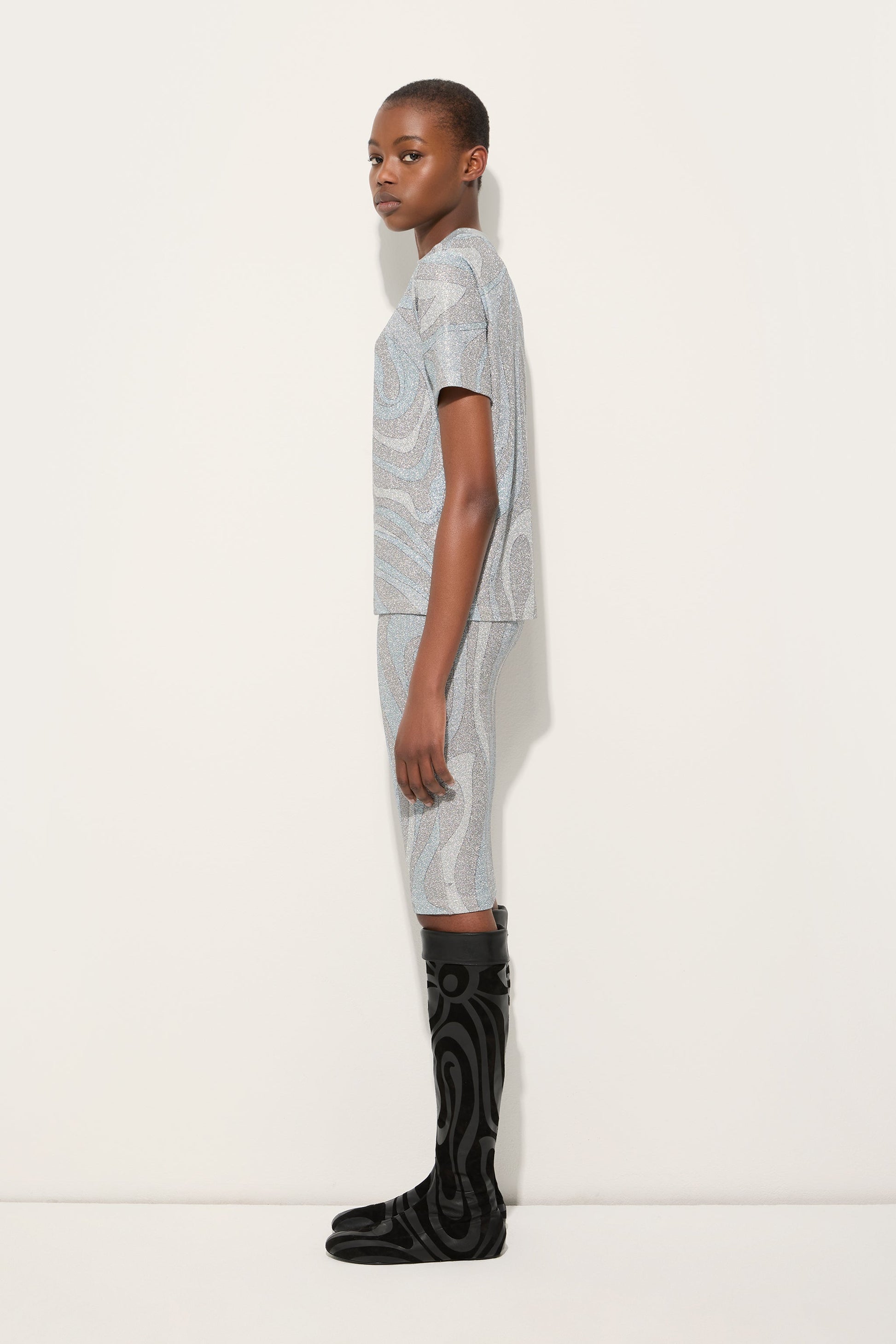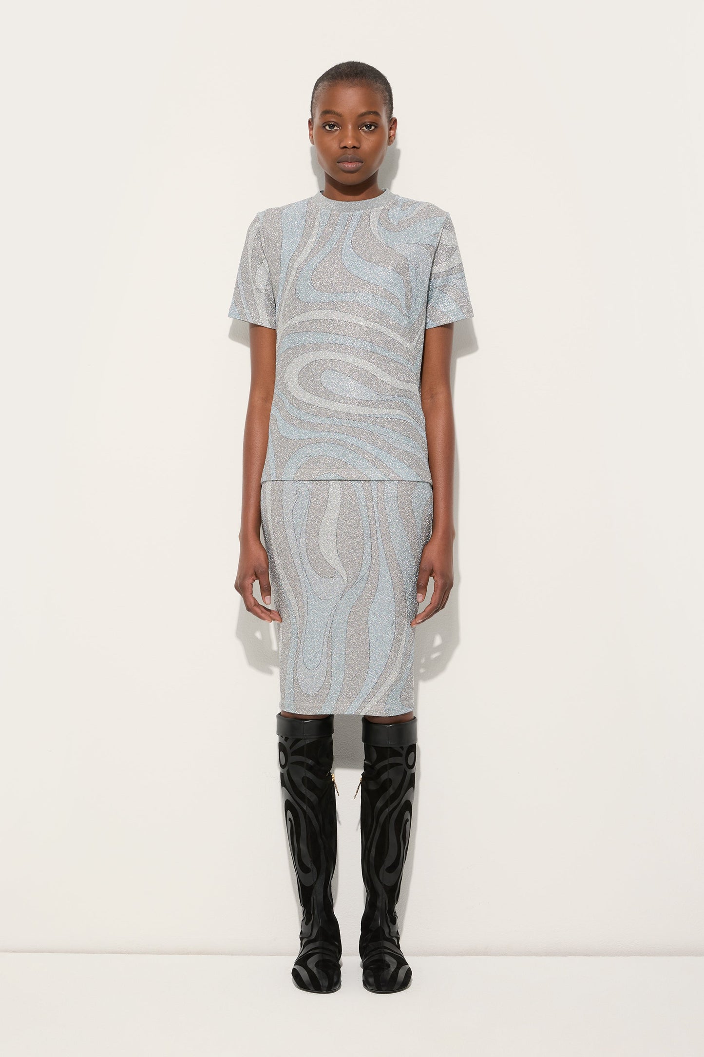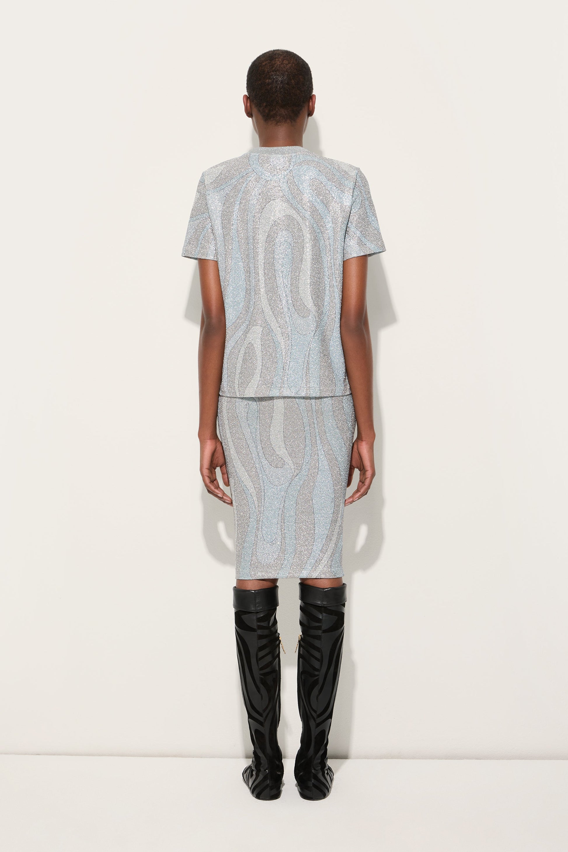T-shirt in Jersey Lamé in Stampa Marmo