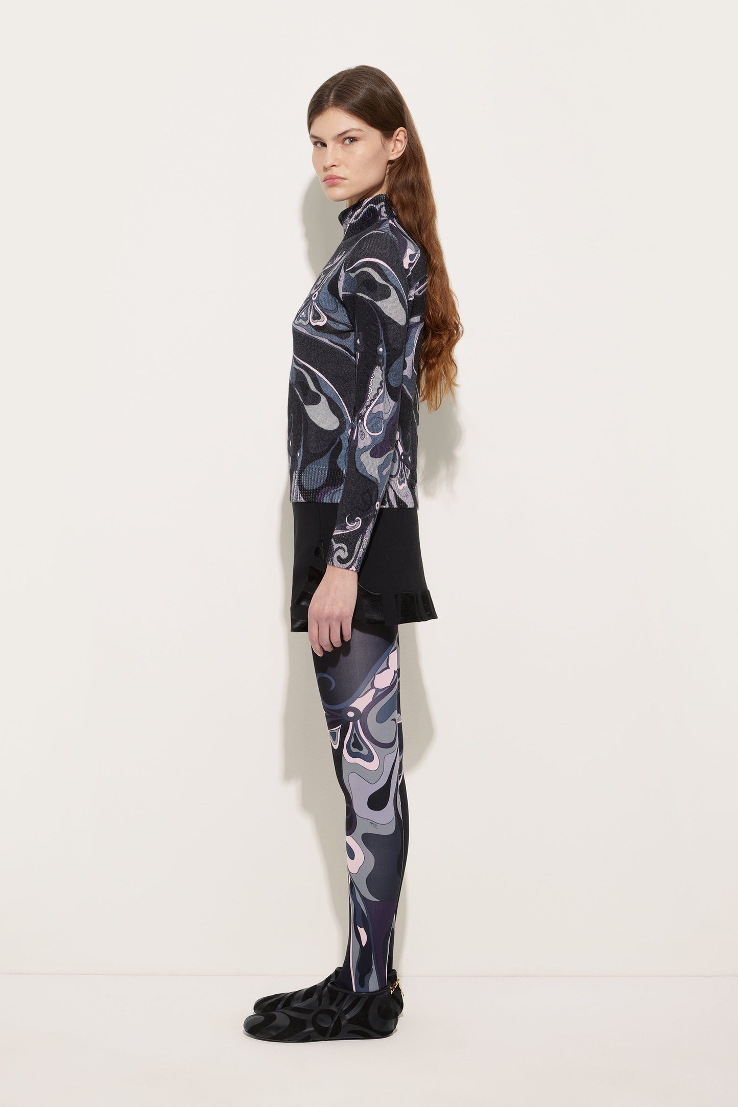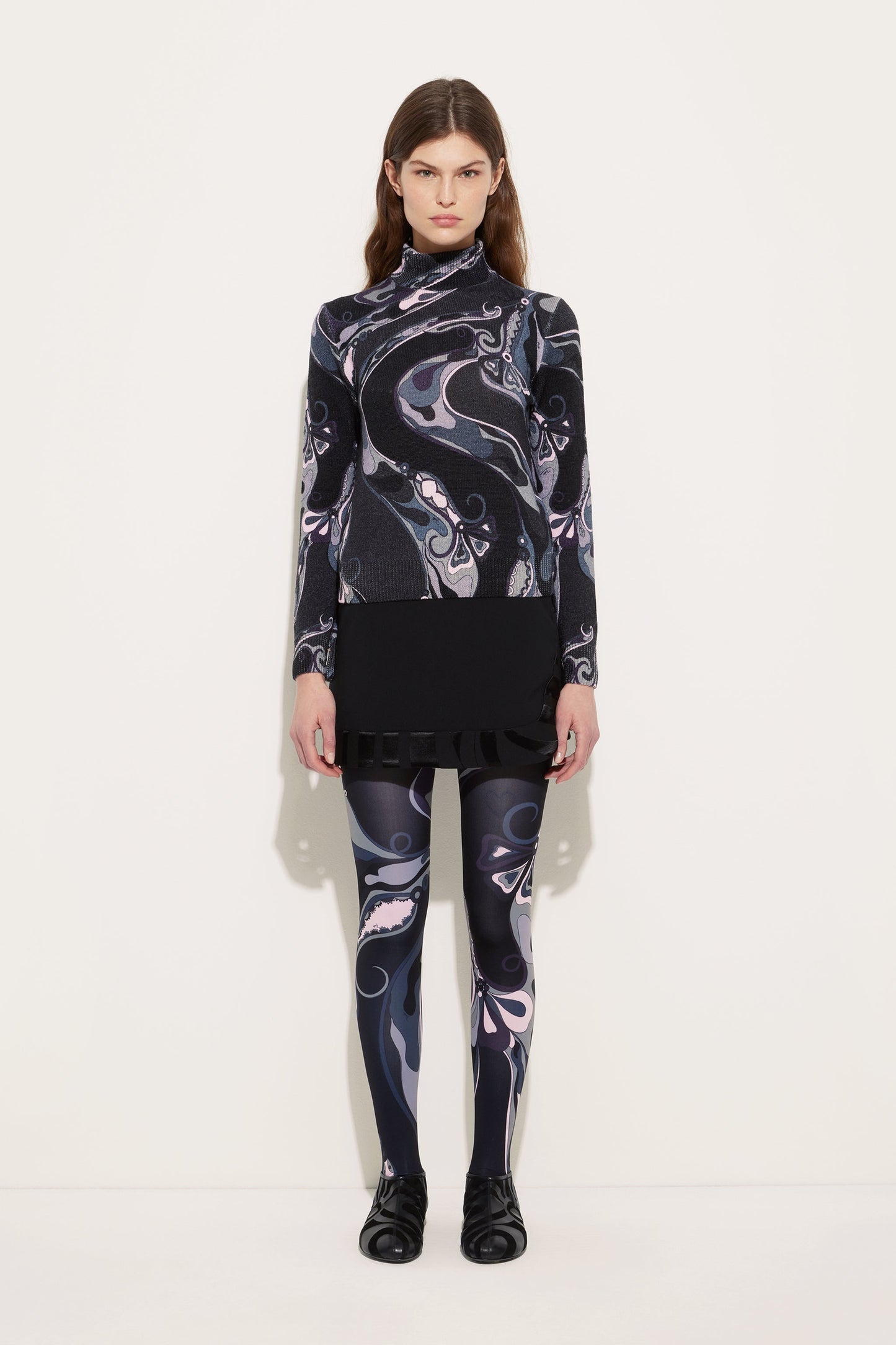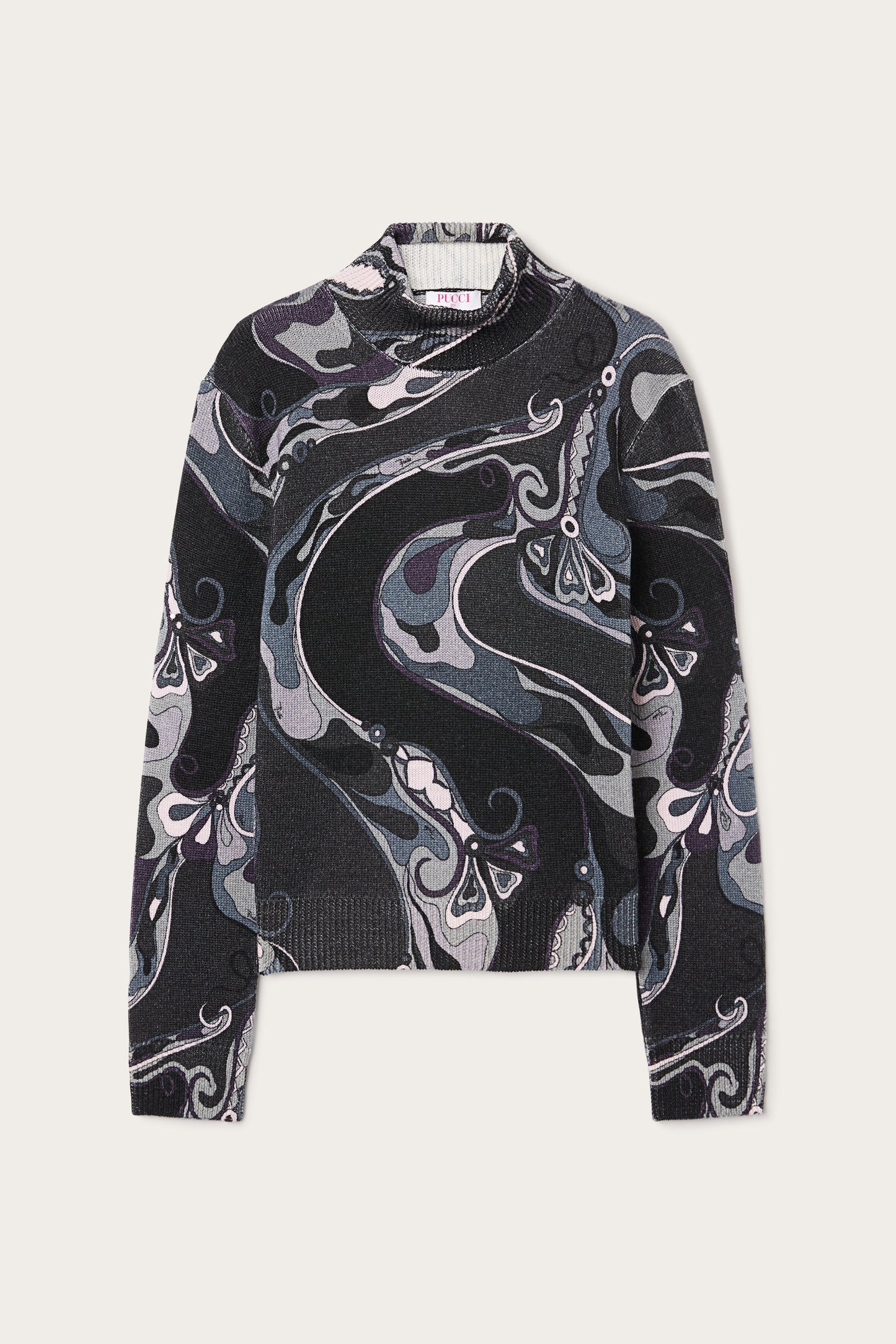 Maglia a Collo Alto in Lana Stampa Orchidee