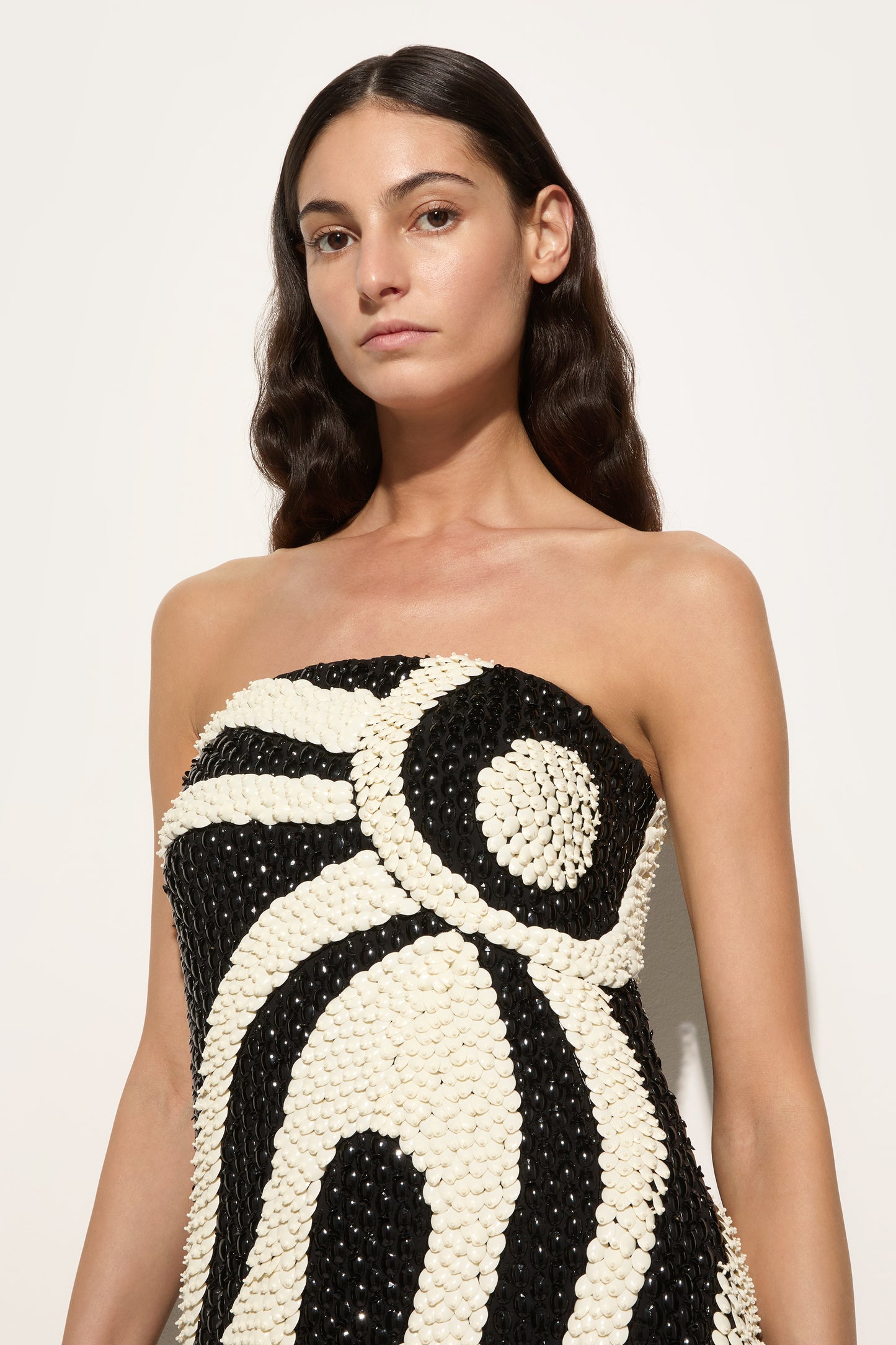 Mini Abito Senza Maniche e Senza Spalline con Ricamo