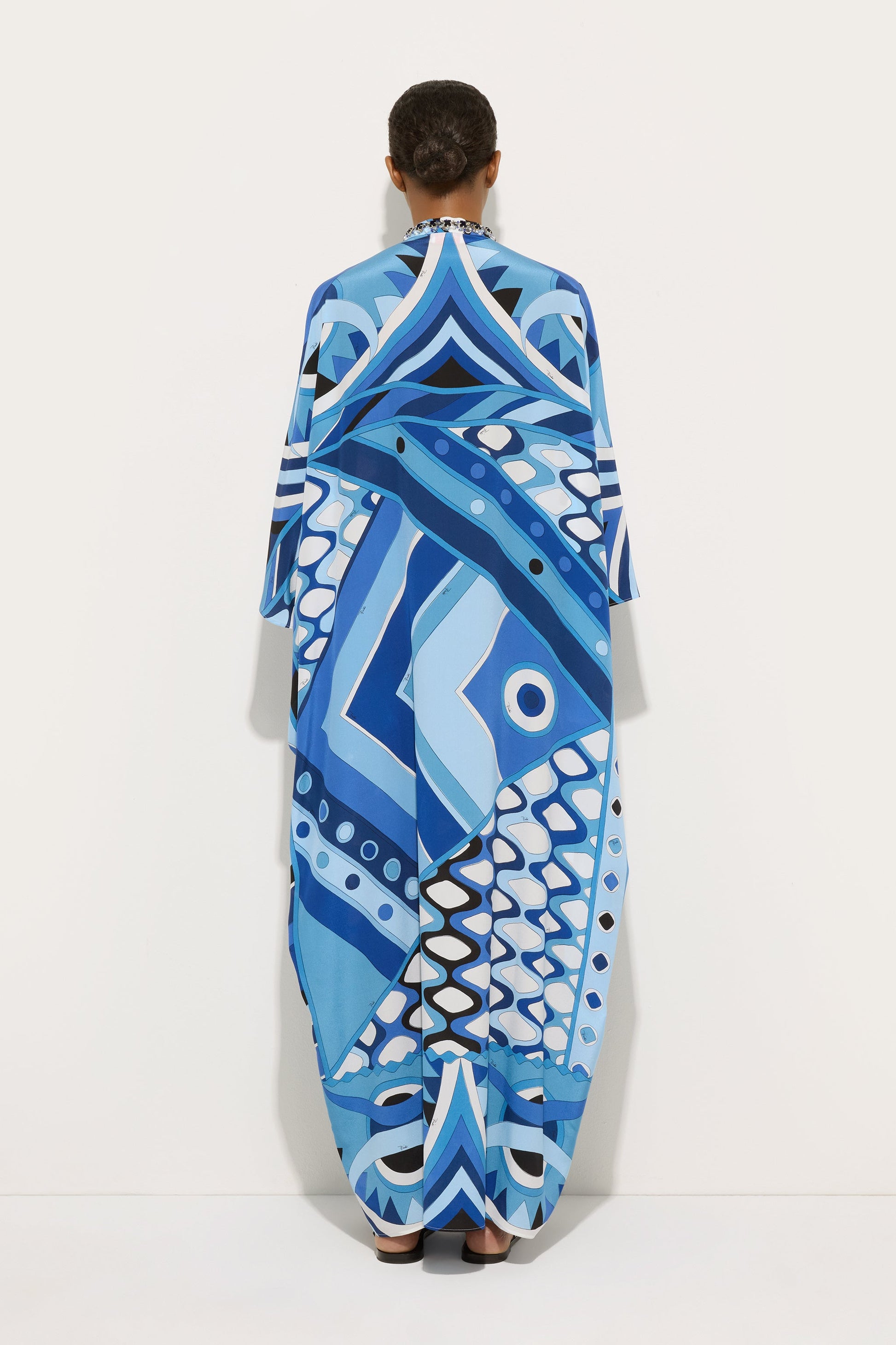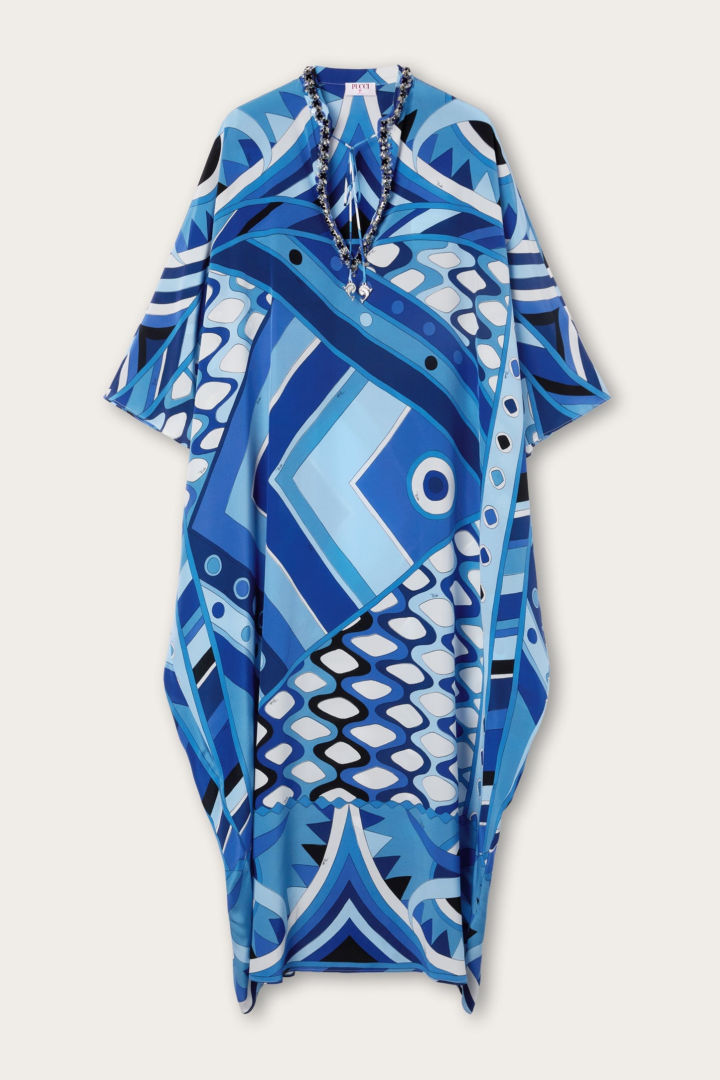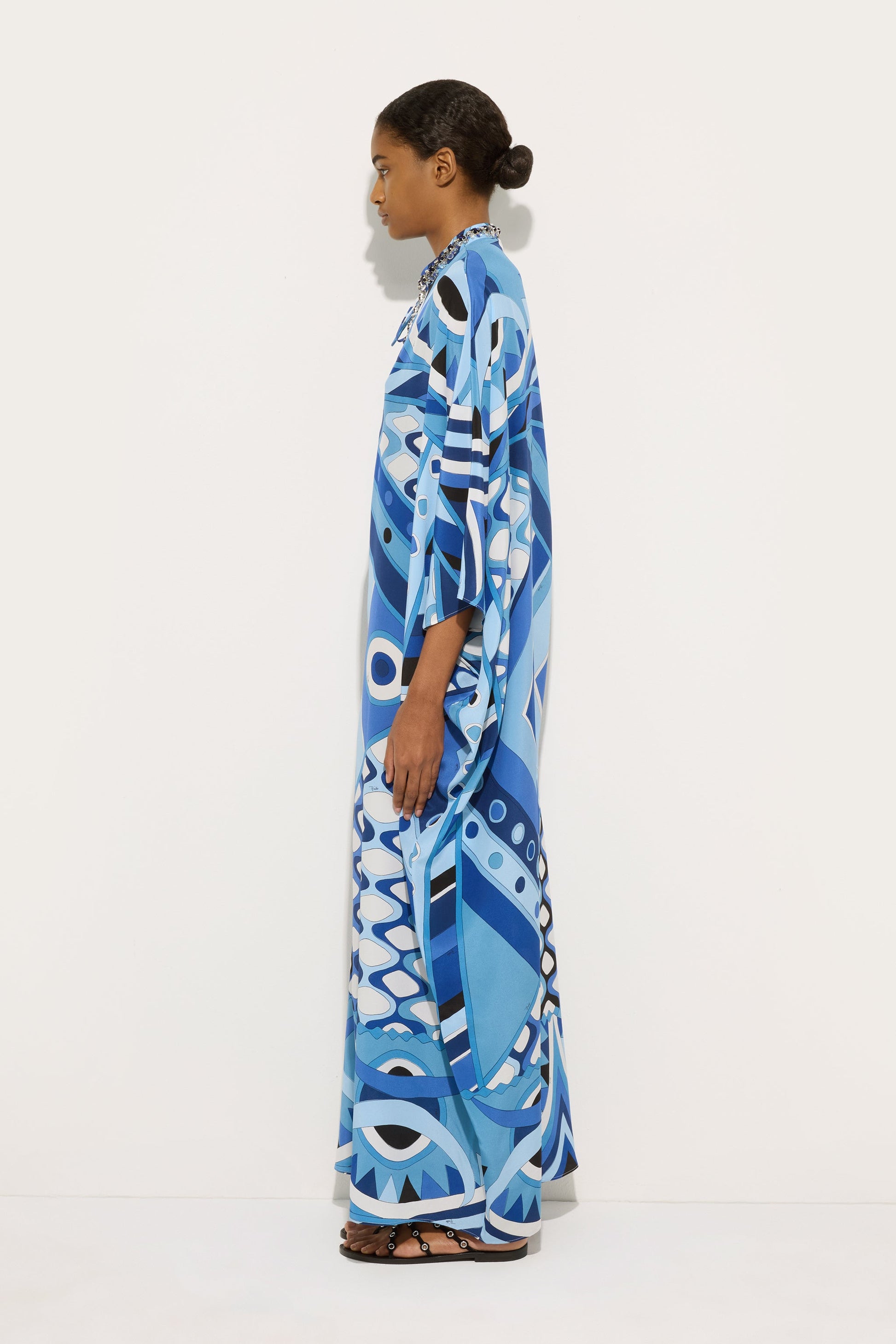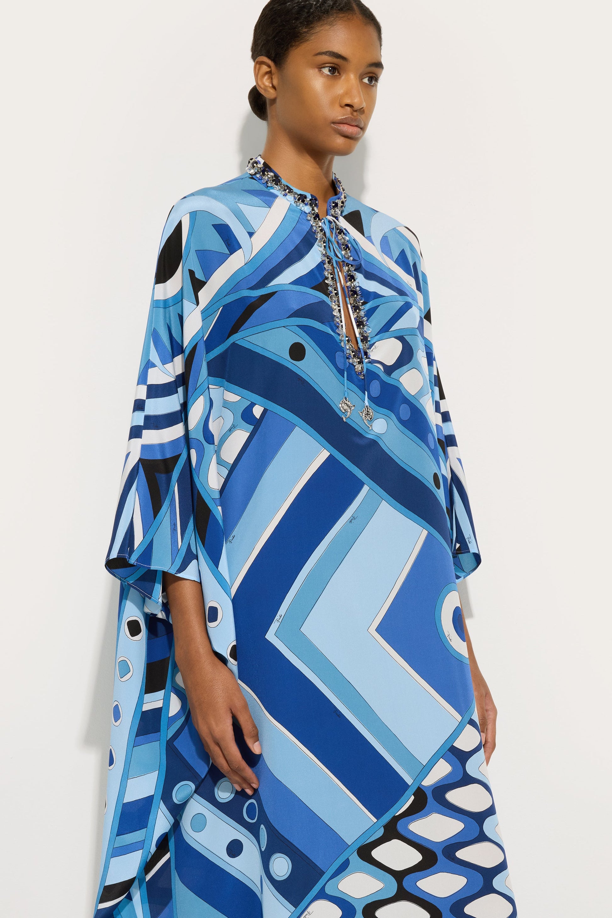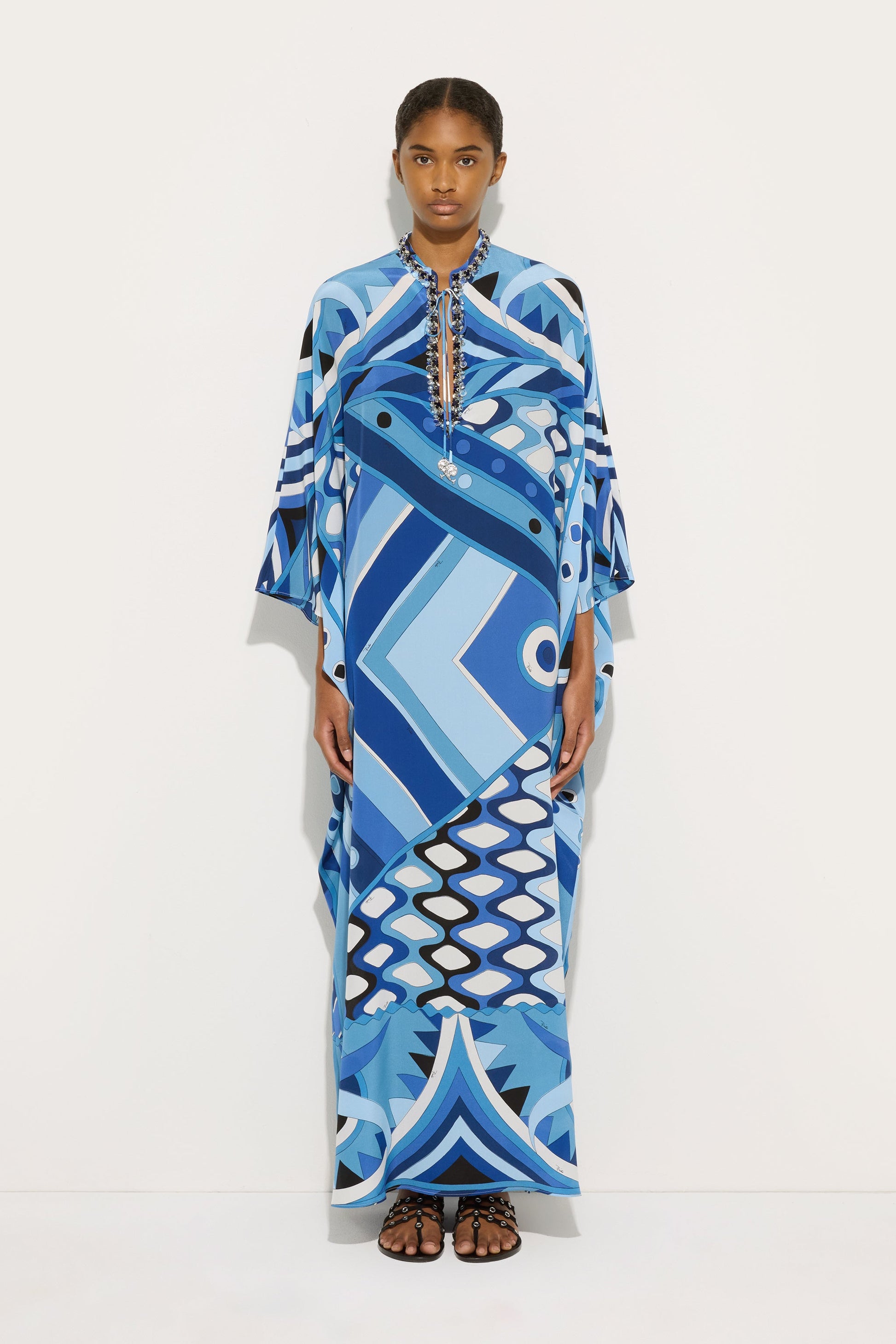 Kaftano Lungo con Ricamo in Stampa Vivara